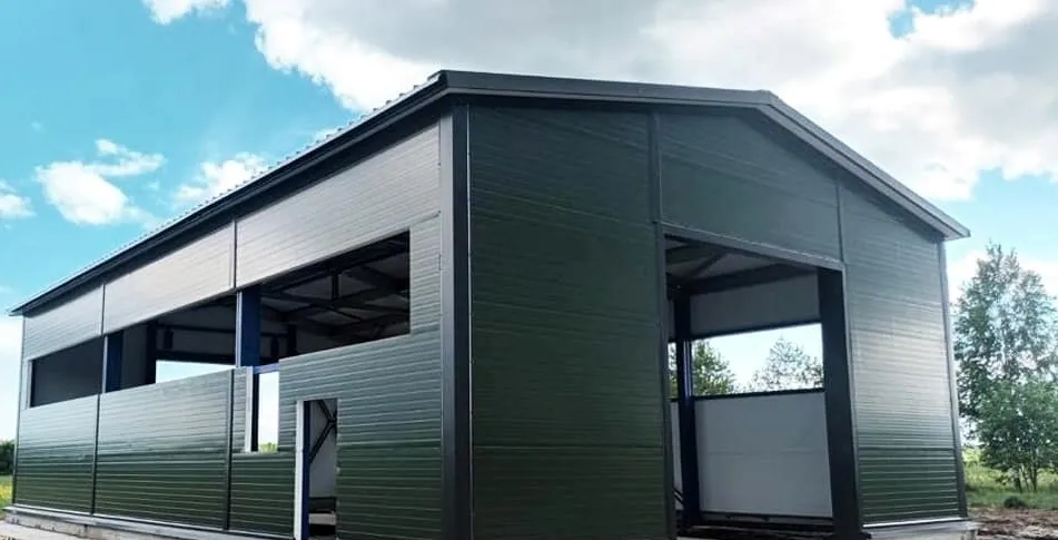 Свободное пространство вдоль стен используйте для хранения шин, навесных плугов, ковшей, прицепов и комплектующих. Сэндвич‑панели поддерживают стабильный микроклимат, защищая детали от влаги и перепадов температур.