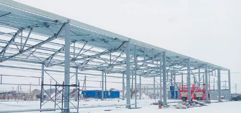 Усиленный стальной каркас рассчитан на высокие статические и динамические нагрузки, включая размещение тяжёлого складского оборудования и стеллажных систем. Срок службы превышает 50 лет. Конструкция выдерживает экстремальные климатические условия в Ханты-Мансийске, включая снеговые и ветровые нагрузки.